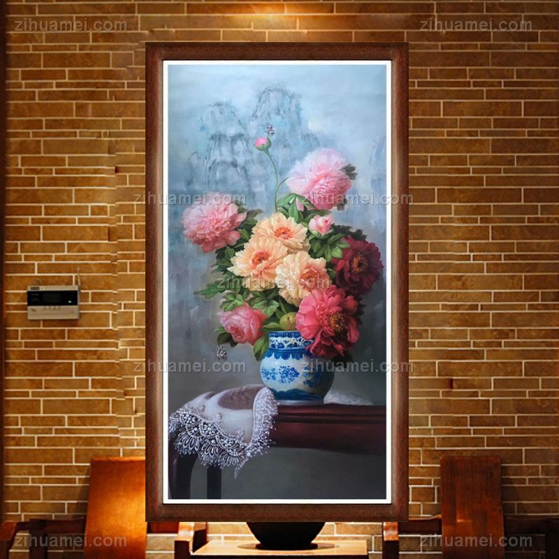 • 中式经典油画花卉纯手绘手工花瓶中式花卉客厅玄关挂画