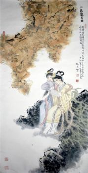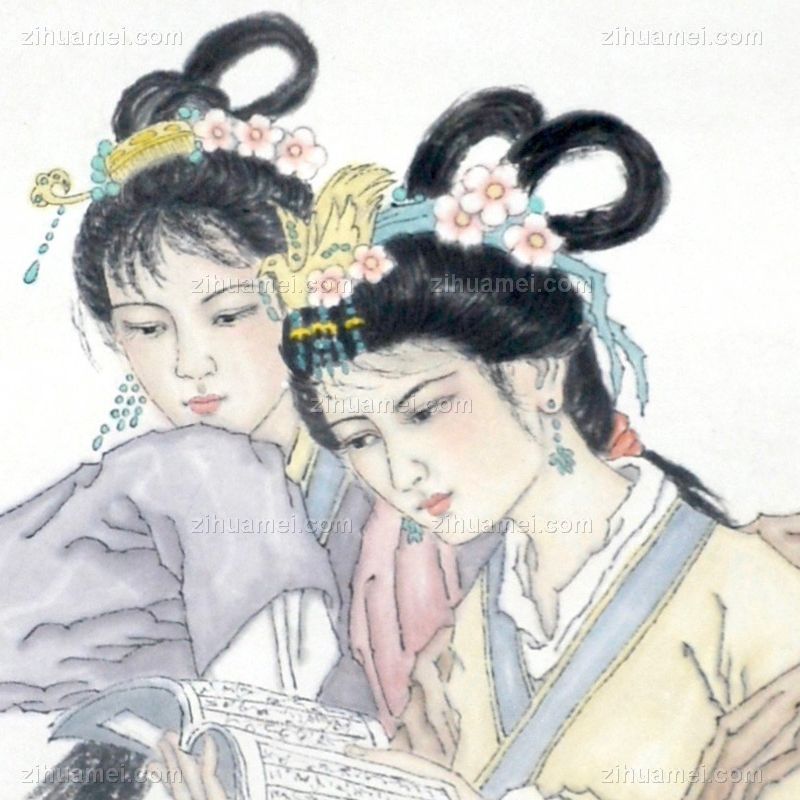 • 二乔观书,人物画 张惠斌的关门弟子温素洁原创手绘,支持作品与画家合影视频百分百真迹