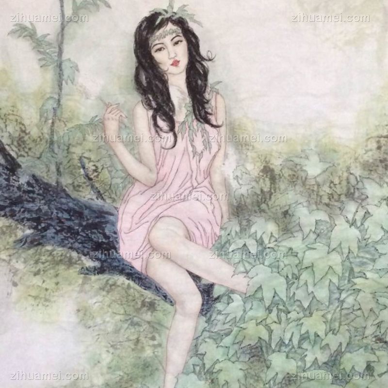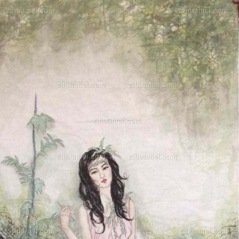• 人物画 丛林仙子,张惠斌的关门弟子温素洁原创手绘,支持作品与画家合影视频百分百真迹