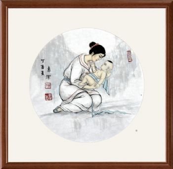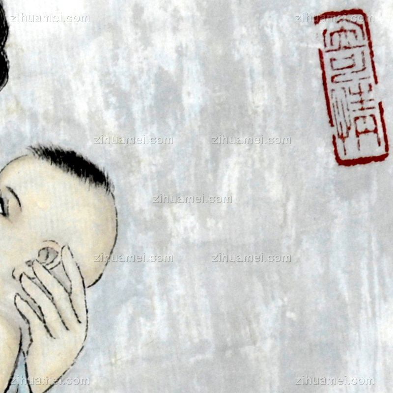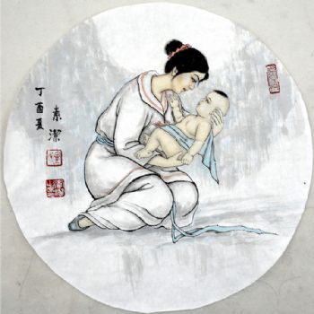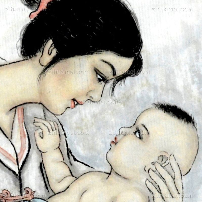 • 人物画母子情3张惠斌的关门弟子温素洁原创手绘,支持作品与画家合影视频百分百真迹