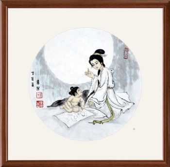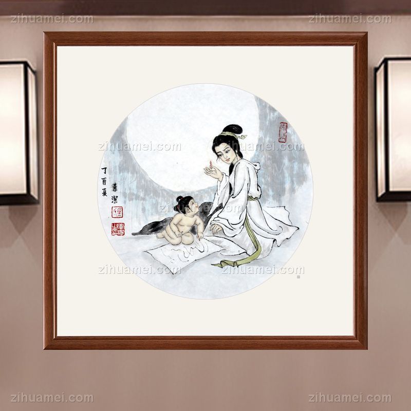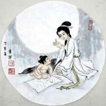 • 人物画母子情4张惠斌的关门弟子温素洁原创手绘,支持作品与画家合影视频百分百真迹