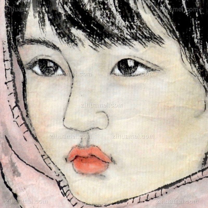 • 人物画小女孩1,张惠斌的关门弟子温素洁原创手绘,支持作品与画家合影视频百分百真迹
