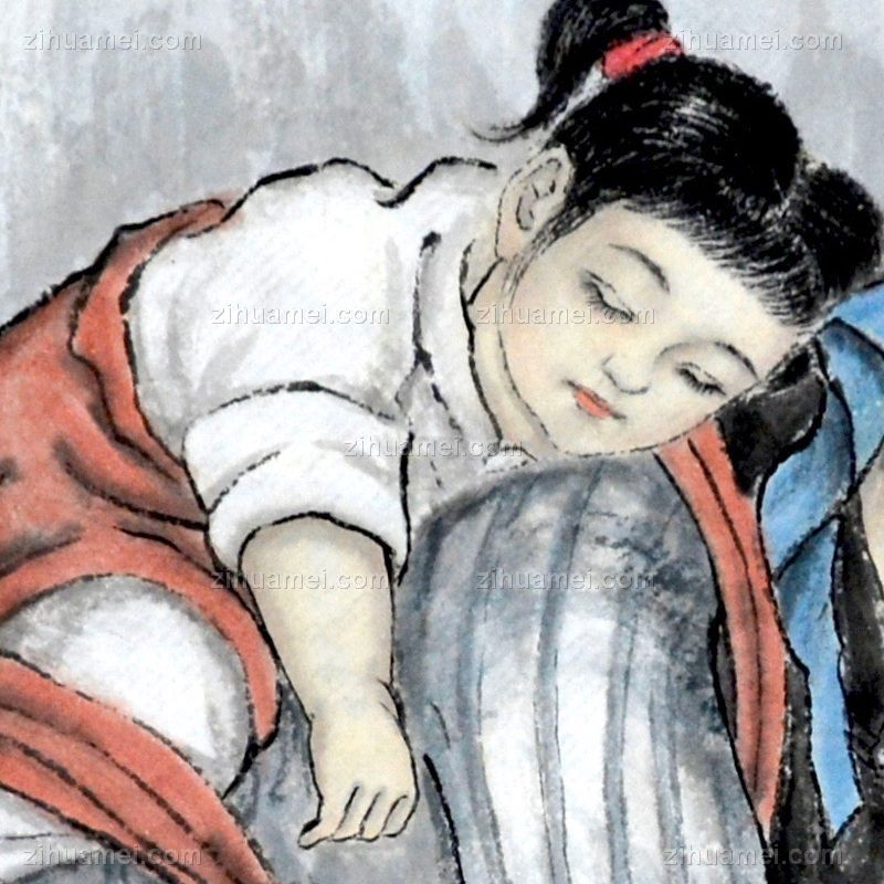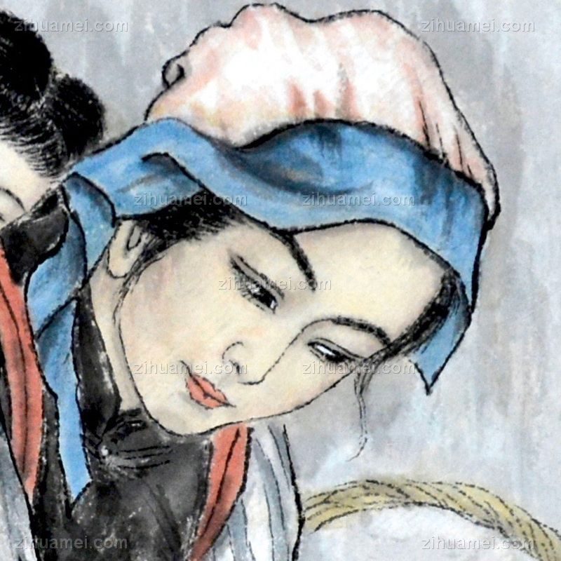 • 母子情1,张惠斌的关门弟子温素洁原创手绘,支持作品与画家合影视频百分百真迹人物画