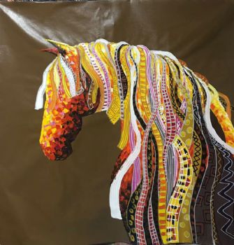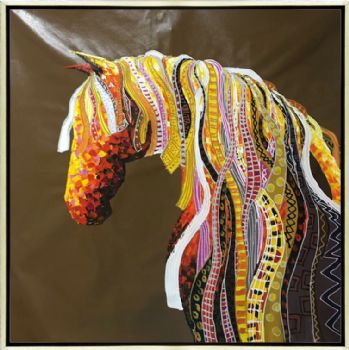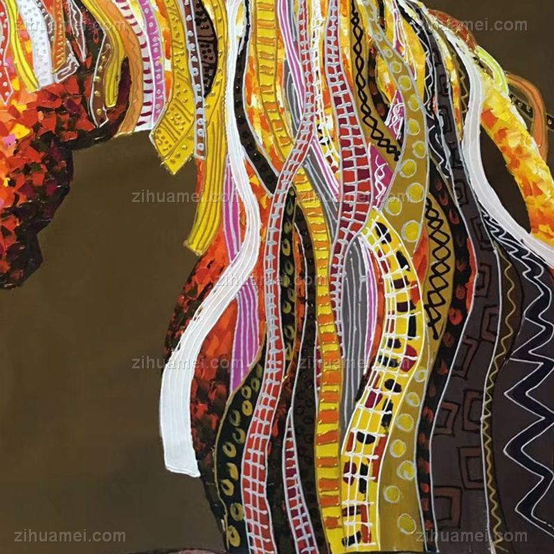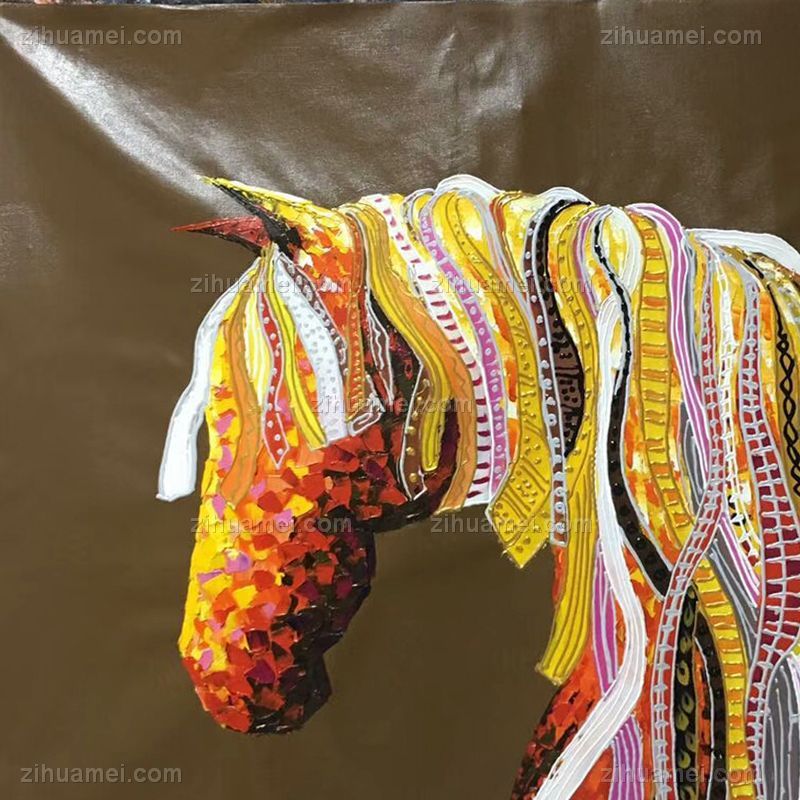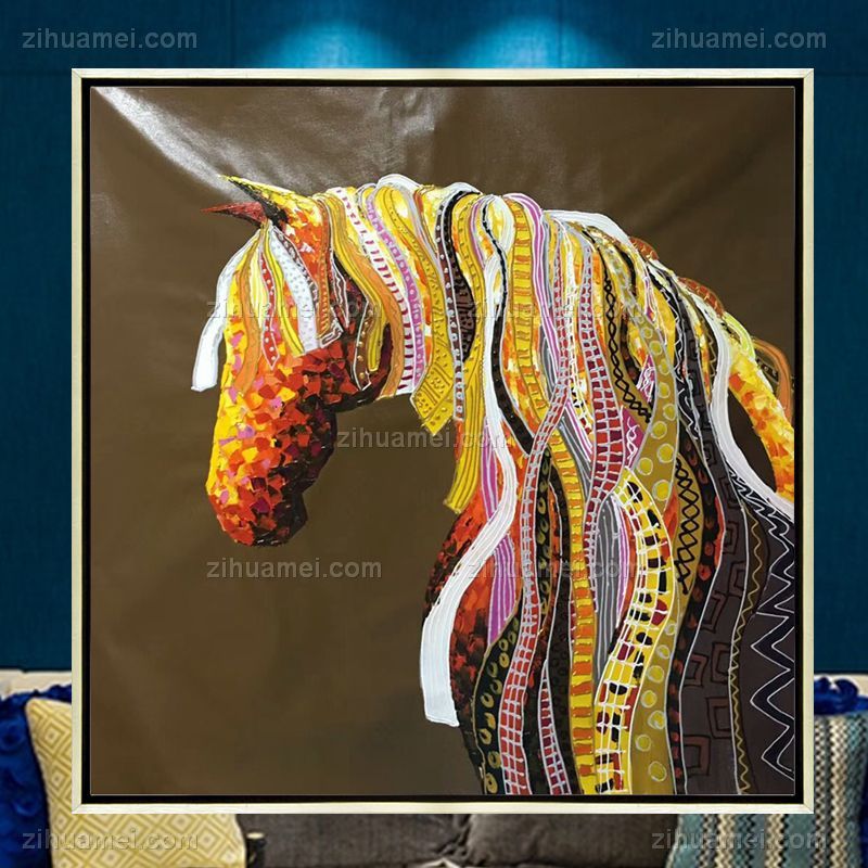 • 纯手绘手工家庭挂画酒店挂画玄观中式挂画多彩的马装饰画线条框