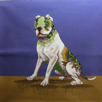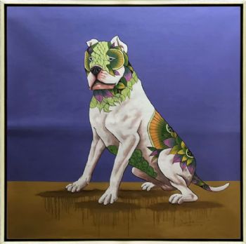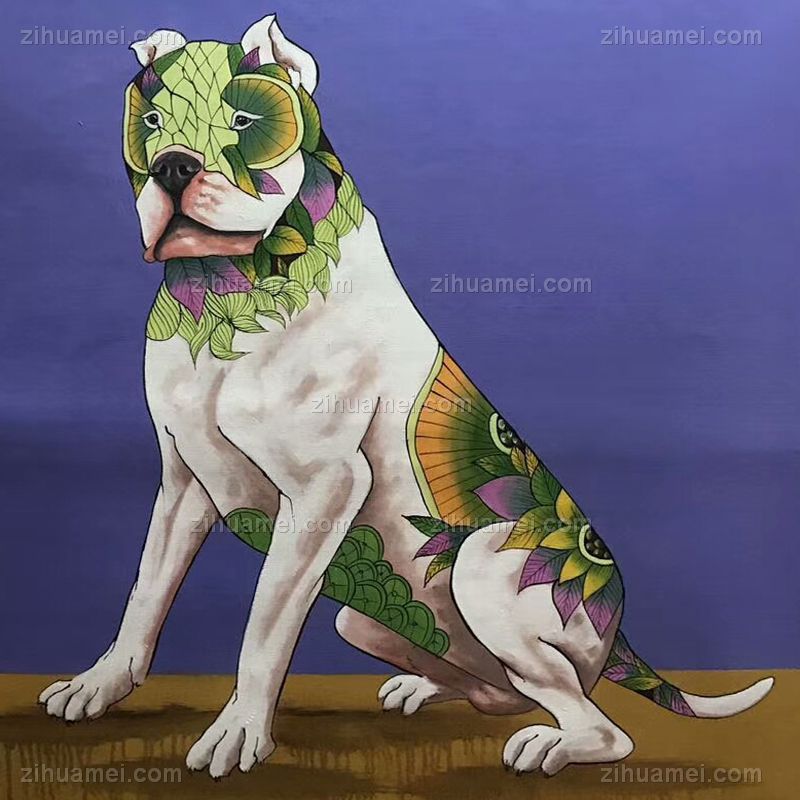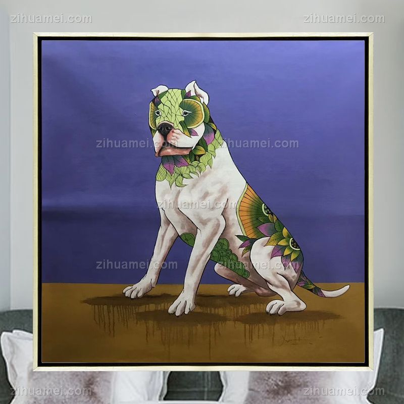 • 纯手绘手工家庭挂画酒店挂画玄观中式挂画多彩的狗装饰画