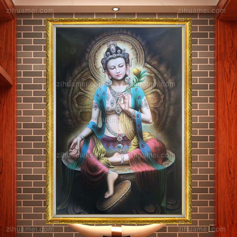 • 新中式客厅玄关装饰画敦煌壁观音菩萨手绘油画 D