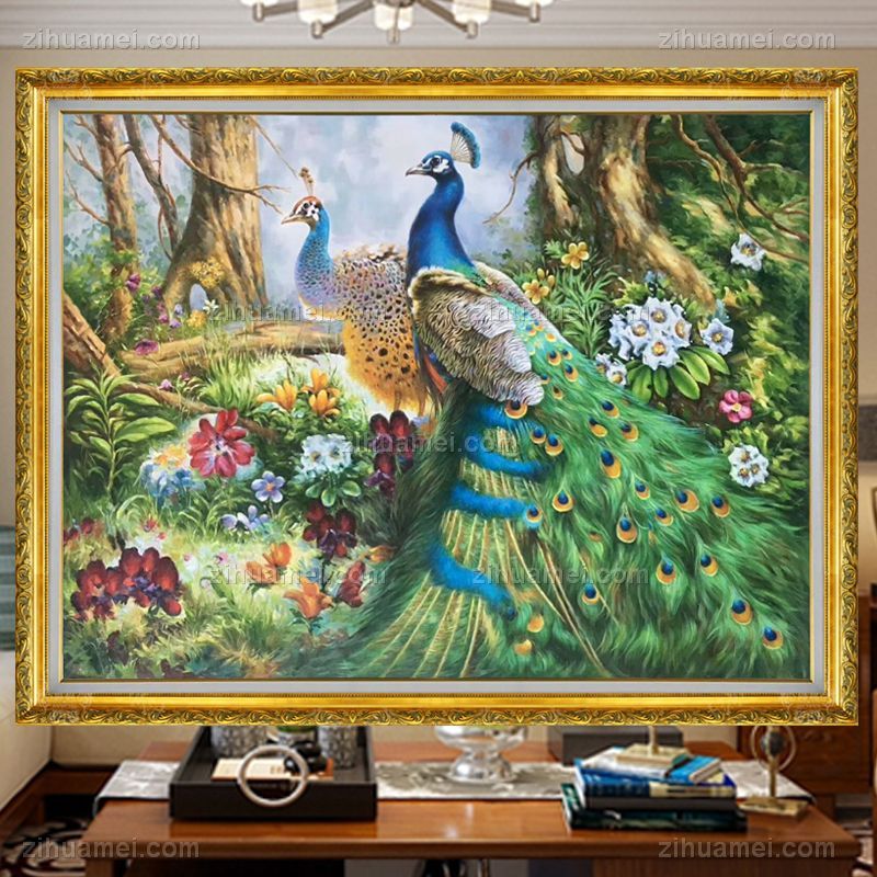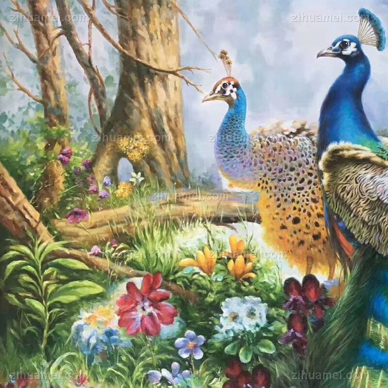 孔雀油画