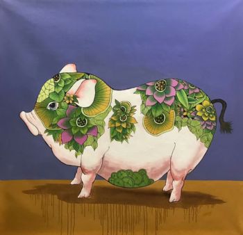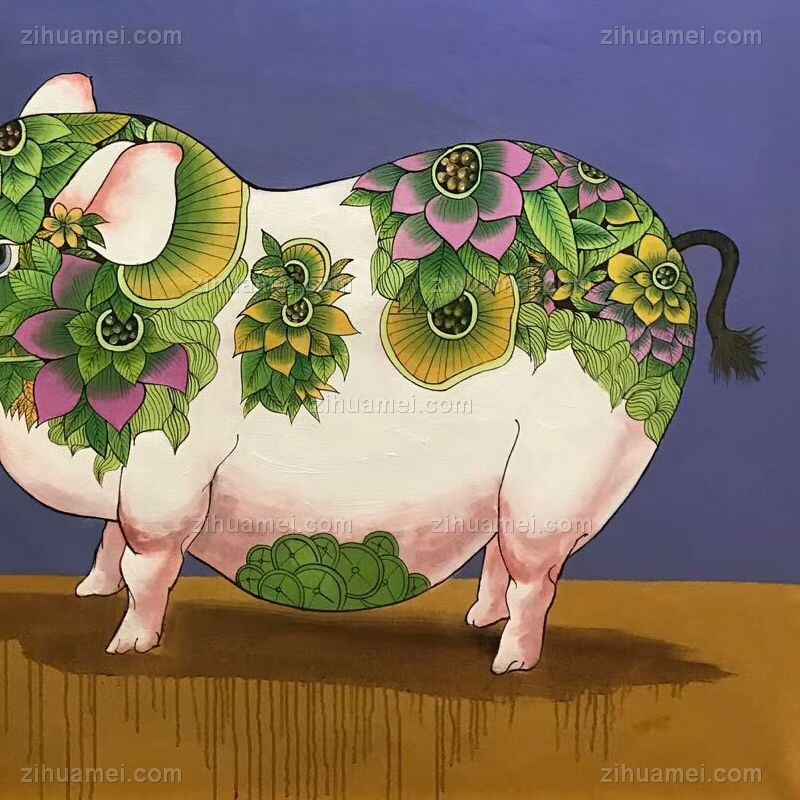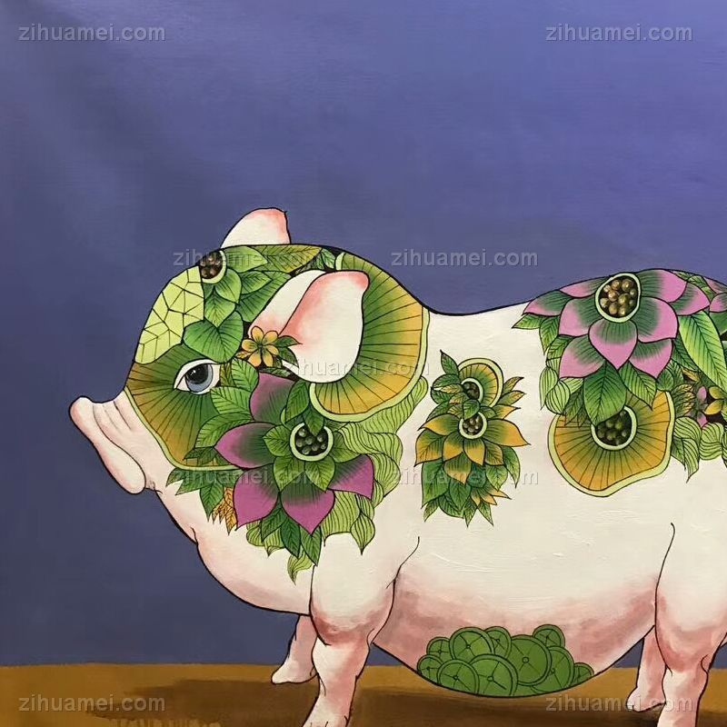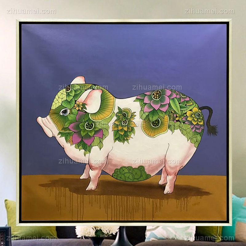 • 卧室挂画漂亮可爱小猪创新简约动物油画现代简约抽象装饰画多彩的猪客厅墙壁画
