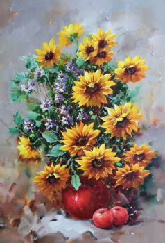• 原创 写意 纯手绘 欧式油画花卉/装饰画 写生花卉花瓶