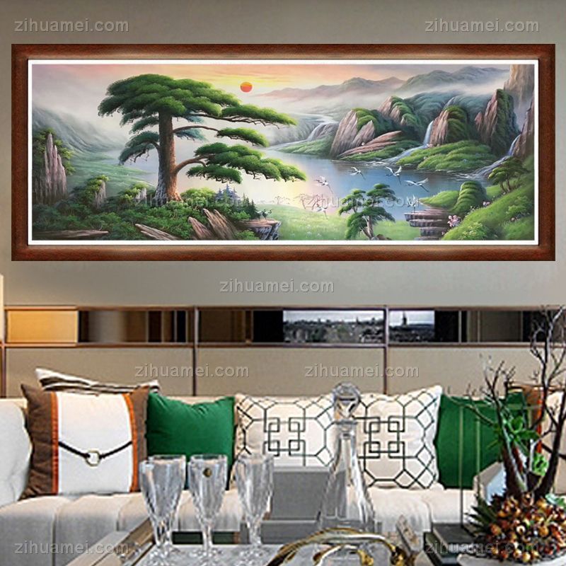• 聚宝盆油画纯手绘中式山水风景客厅装饰画办公室壁画风水挂画