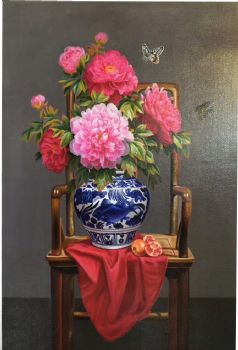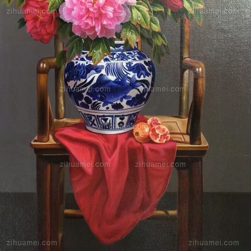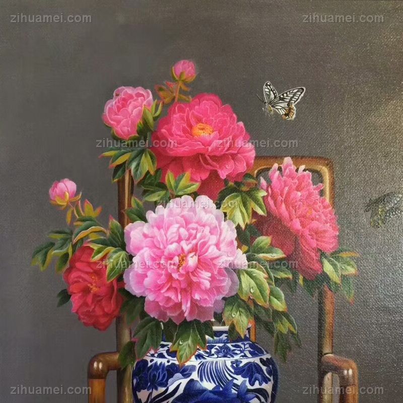 油画牡丹青花瓷