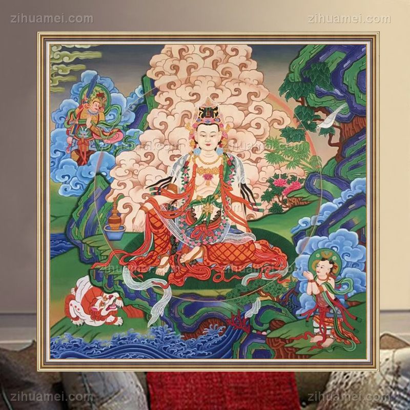 • 中式古典玄关佛堂书房竖版有框禅意藏式唐卡装饰画挂画