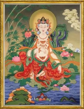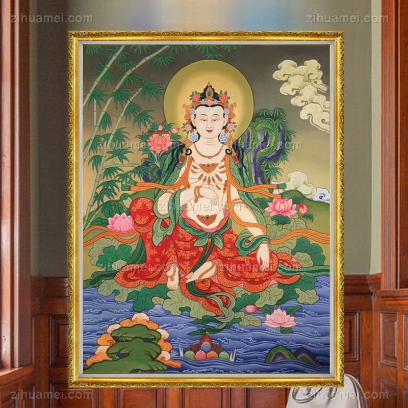 • 中式古典玄关佛堂书房竖版有框禅意藏式唐卡装饰画挂画