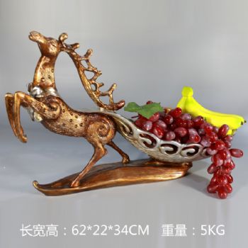 • 鹿在远方果盘雕塑摆件中式摆件精品手工雕塑