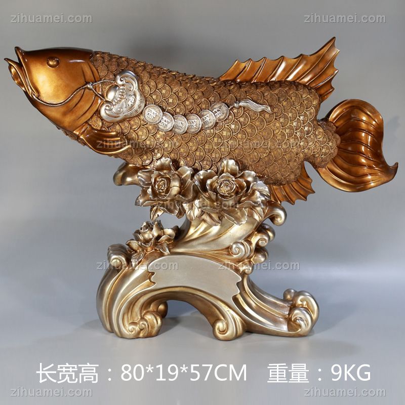 • 年年有余龙鱼9KG雕塑摆件中式摆件精品手工雕塑