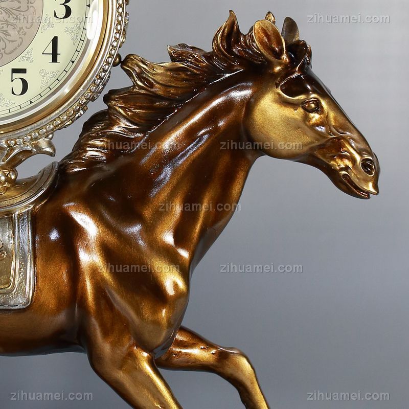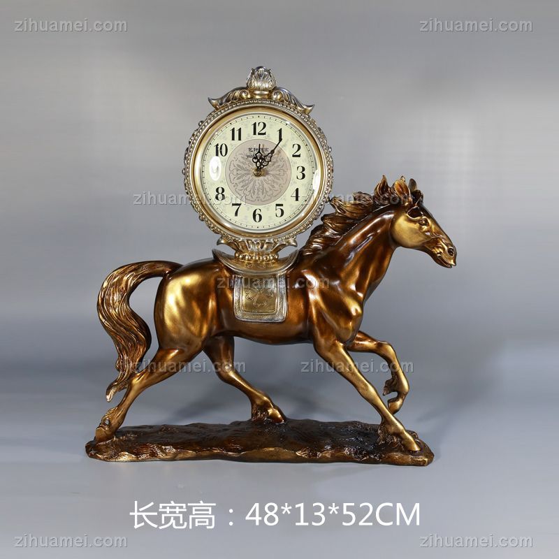 • 奔马摆钟雕塑摆件欧式摆件精品手工雕塑