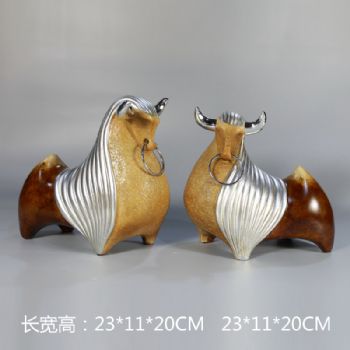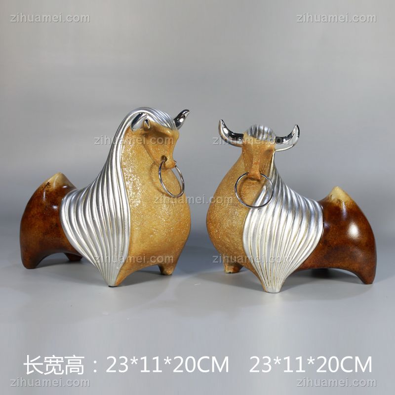 • 复古双牛霸气雕塑摆件欧式摆件精品手工雕塑