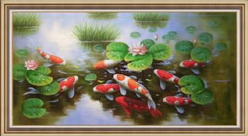 玄关九鱼图纯手绘写实锦鲤油画作品实木外框 手绘