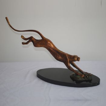 • 极富动态烈豹XX铜工艺品 铜雕塑 家居摆件 办公室软装黄铜 大理石