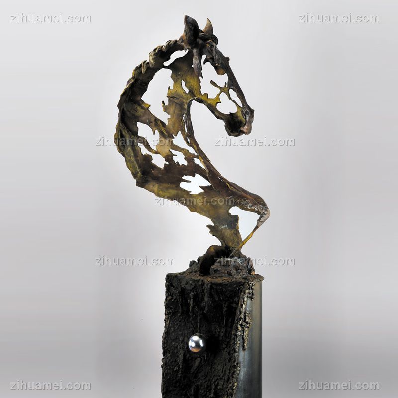 • 缕空马头抽象XLC-04铜工艺品 铜雕塑 家居摆件 办公室软装 黄铜 铁 大理石