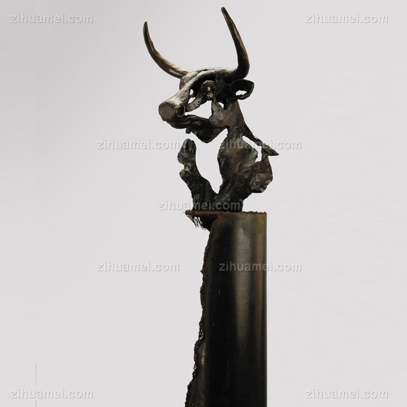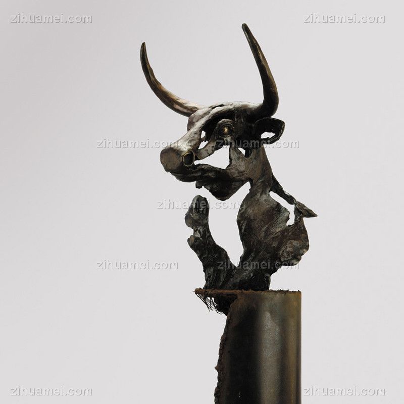 • 缕空牛头抽象XLC-02铜工艺品 铜雕塑 家居摆件 办公室软装 黄铜 铁 大理石5KG