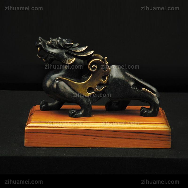 • 祥瑞貔貅XL12-014铜工艺品 铜雕塑 家居摆件 办公室软装黄铜 柚木