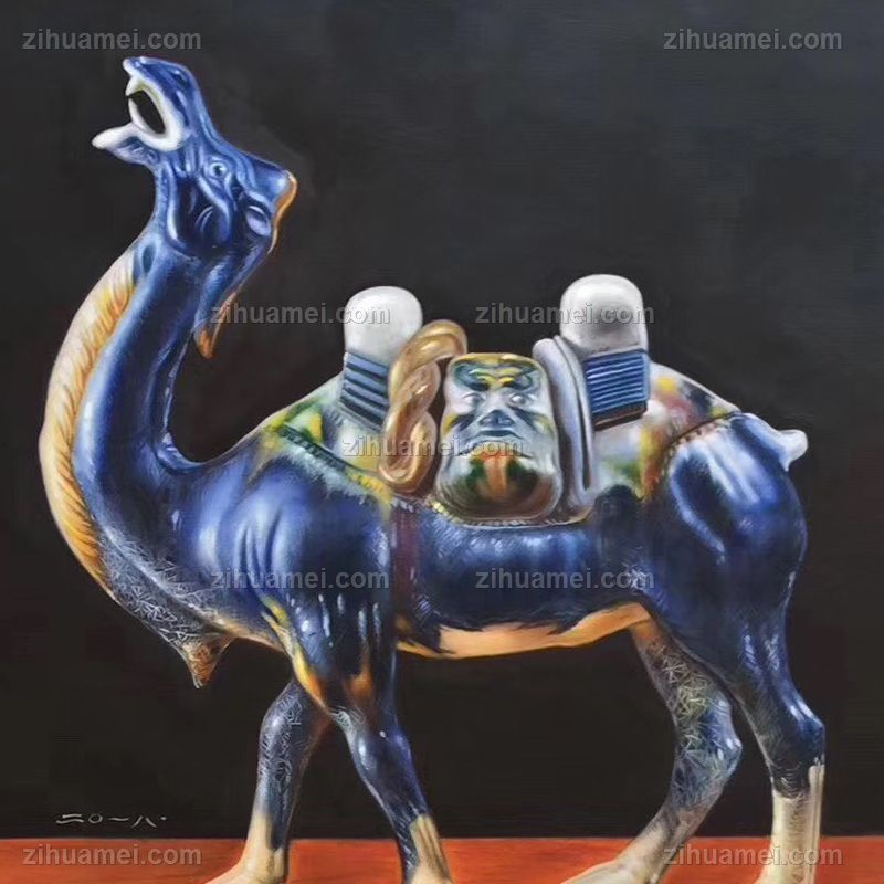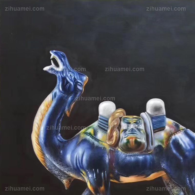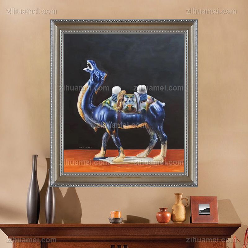 • 中式油画手绘陶瓷骆驼 唐三彩骆驼 啸天驼 家居装饰挂画 镇宅转运旺财