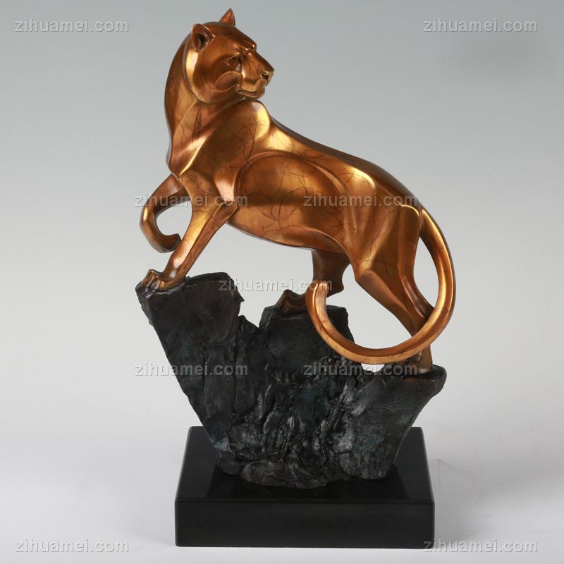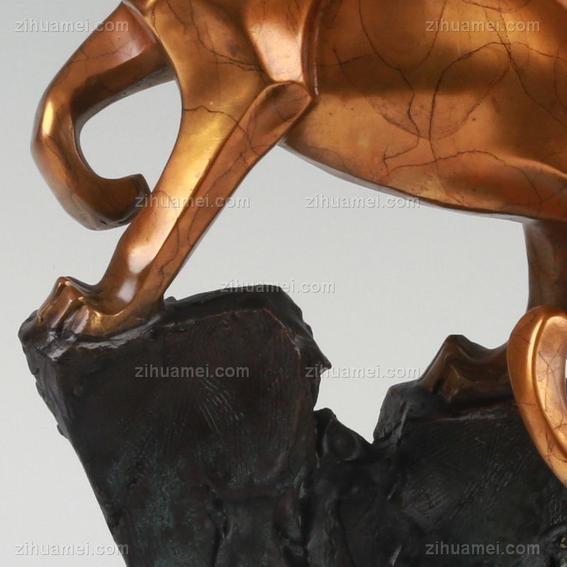• 狮王回首XLA4-09铜工艺品 铜雕塑 家居摆件 办公室软装黄铜 大理石4.4
