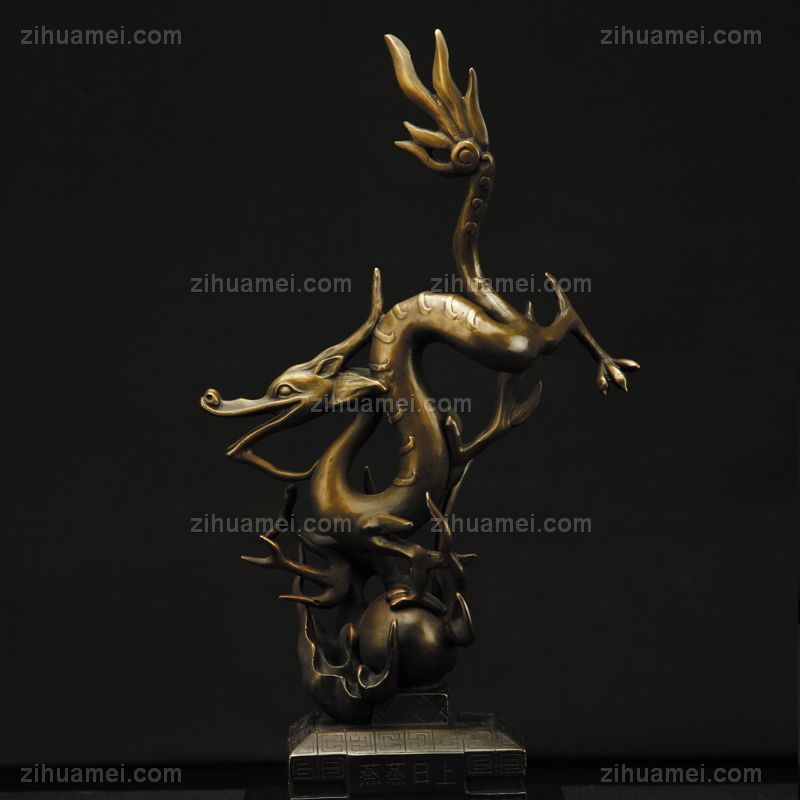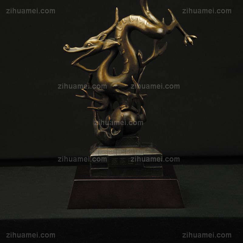 • 皇族飞龙XL12-026铜工艺品 铜雕塑 家居摆件 办公室软装黄铜 木头