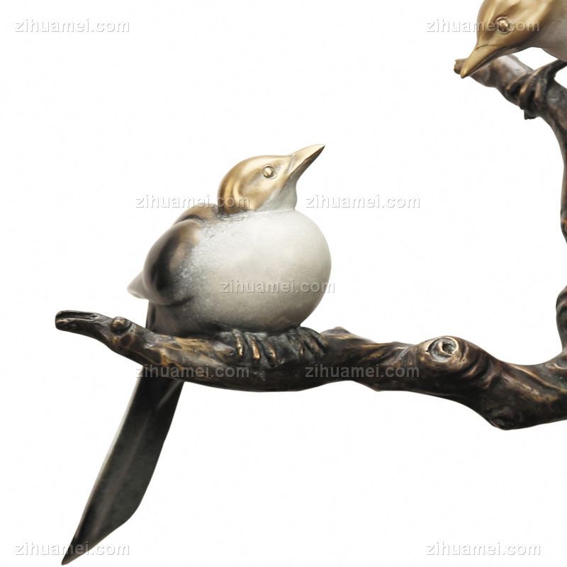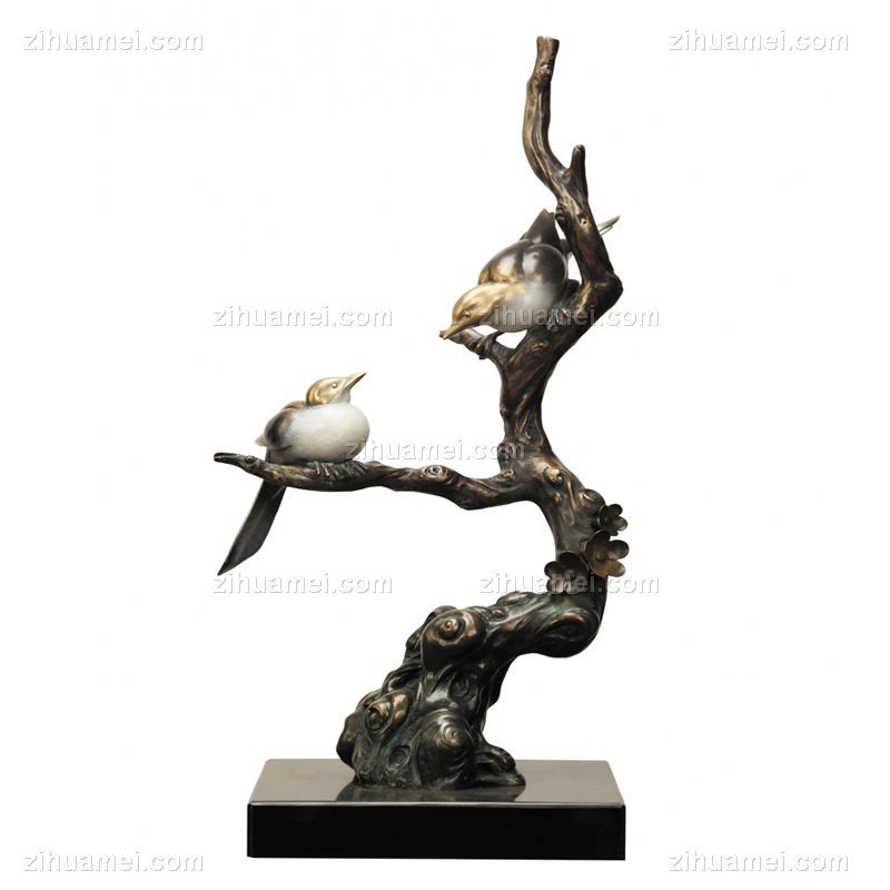 • 喜上枝头XLA3-25铜工艺品 铜雕塑 家居摆件 办公室软装 黄铜 大理石4.5KG