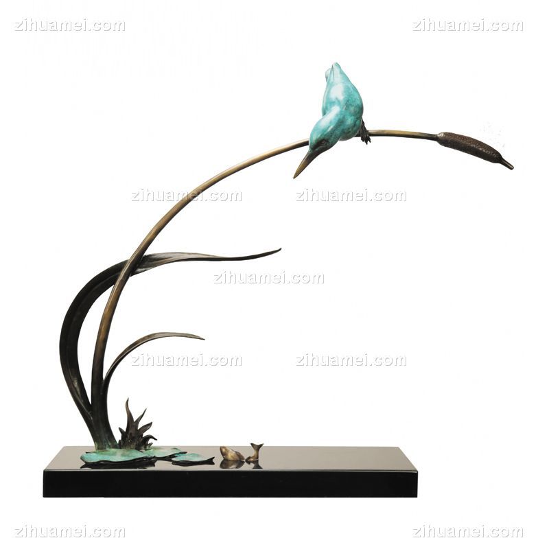 • 飞鸟枝头铜工艺品 铜雕塑 家居摆件 办公室软装硅青铜 大理石2.6KG
