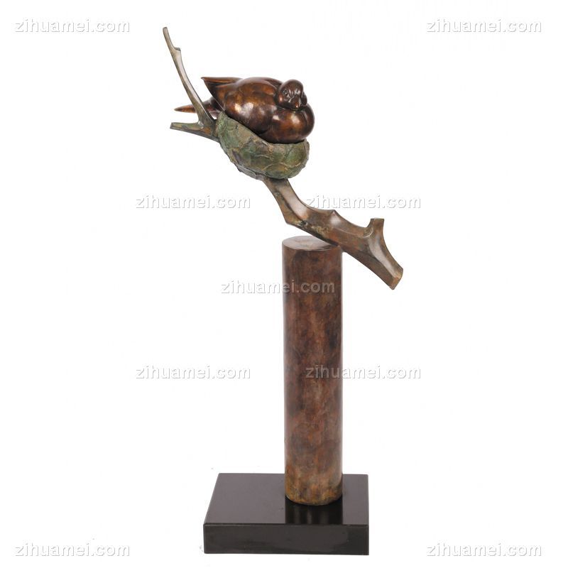 • 创意喜上枝头XLA2-06铜工艺品 铜雕塑 家居摆件 办公室软装硅青铜 大理石3.8KG