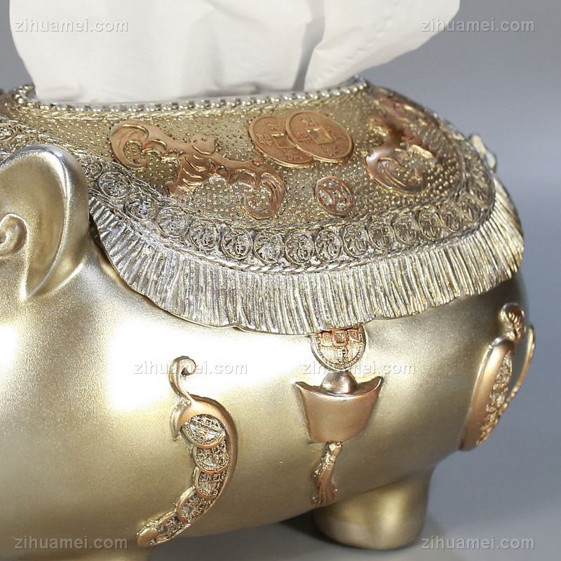 • 精品富贵大象纸巾盒手工制作树脂摆件高品质保证办公室家庭酒店摆件