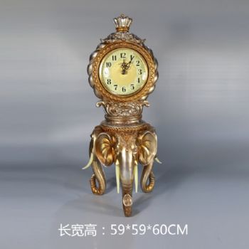 • 圆形古典大象时钟手工制作树脂摆件高品质保证办公室家庭酒店摆件