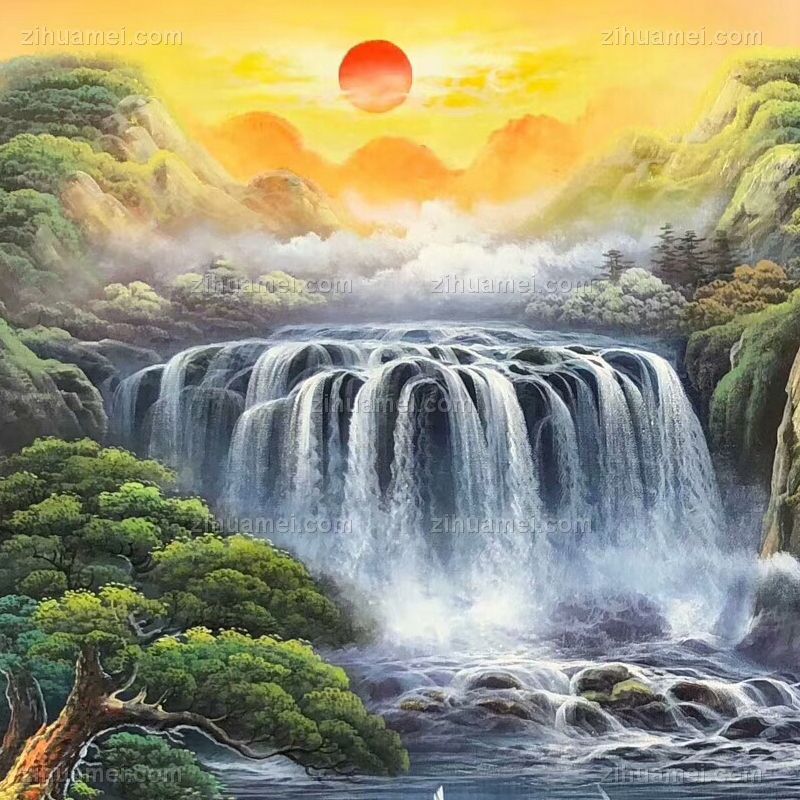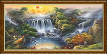 纯手绘风景油画山水画聚宝盆风景油画实木画框 手绘