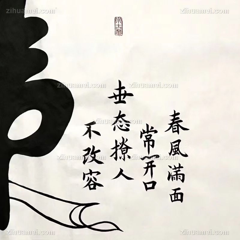 • 当代艺术书法家董泽柱书法作品笑口常开春风满面常开口, 世态撩人不改容