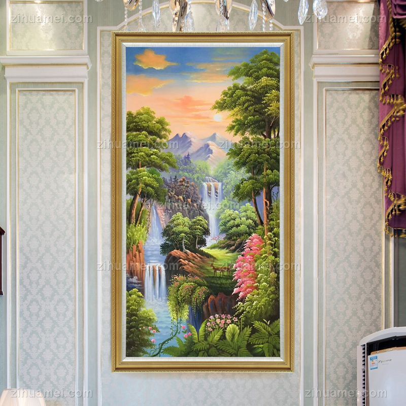 • 手绘油画山水风景油画客厅玄关装饰画定制油画竖版家庭挂画酒店挂画
