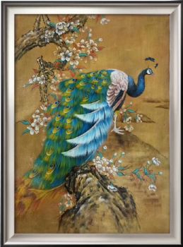 孔雀玉兰花纯手绘新中式客厅油画实木外框 手绘