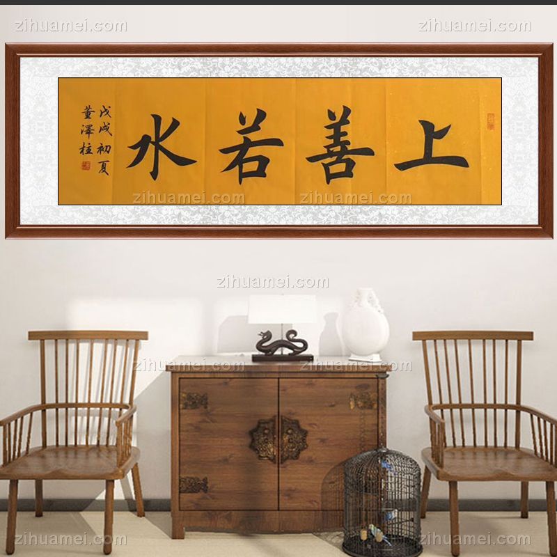 • 上善若水书法家董泽柱楷书书法作品手绘手工柚木装裱办公室挂画