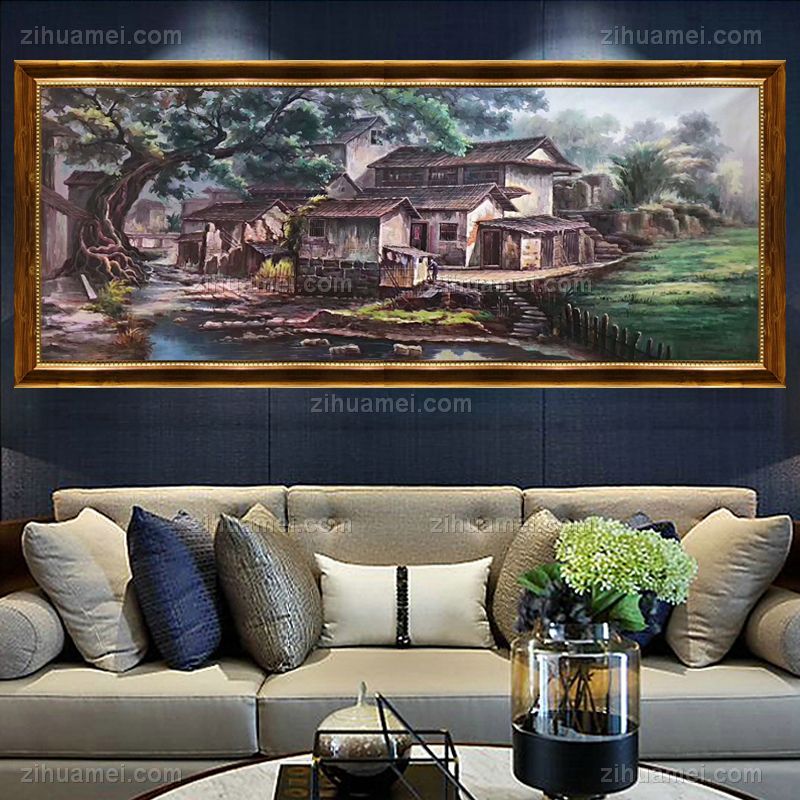 • 中国风客厅风景大幅手绘水墨江南风景沙发背景墙风景油画客厅挂画装饰画中式油画