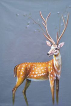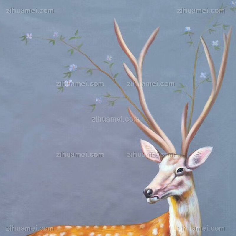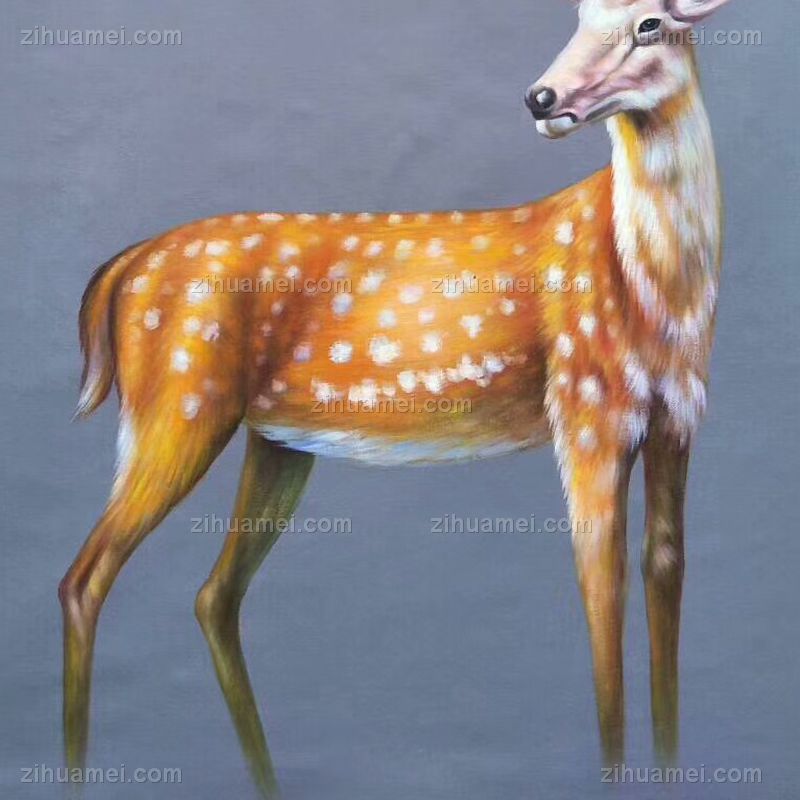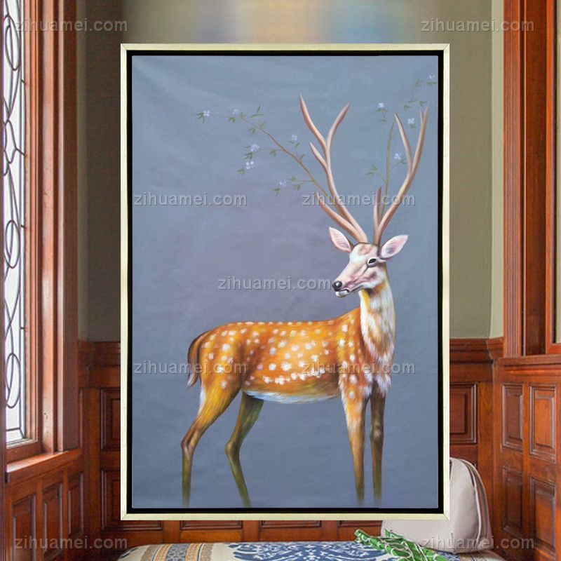 送长辈动物写实油画梅花鹿手绘油画卧室挂画 手绘