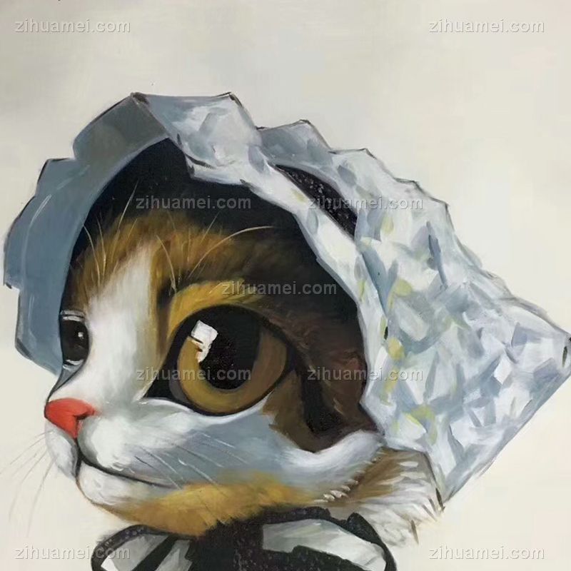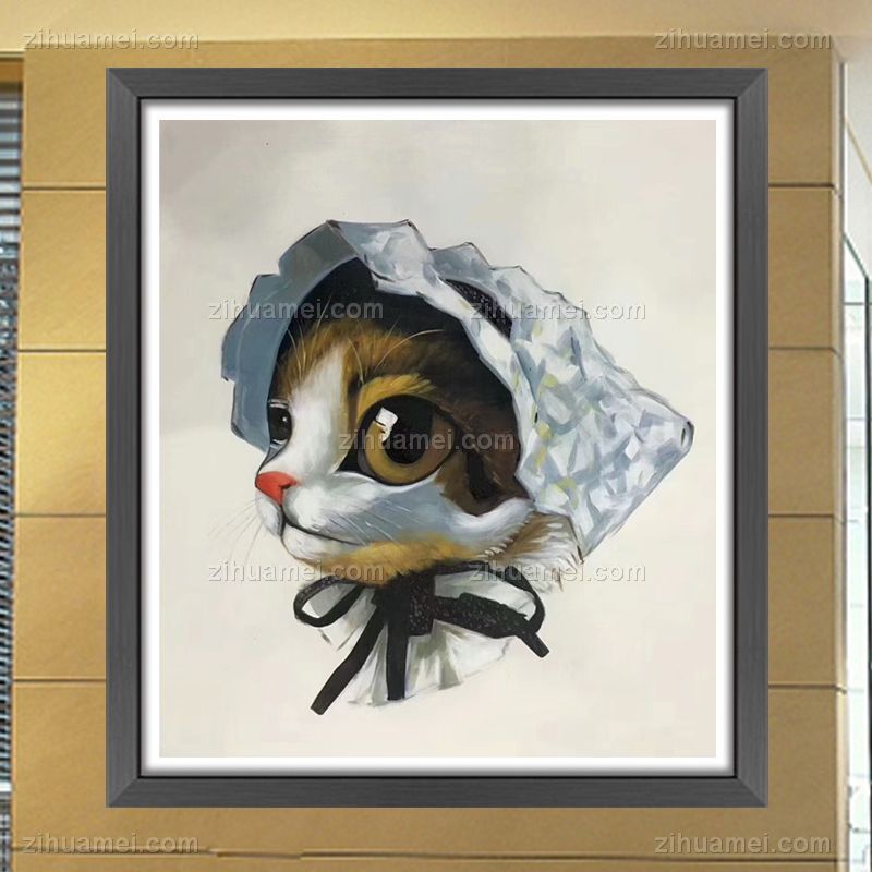手绘宠物油画儿童卧室油画猫咪动物油画 手绘