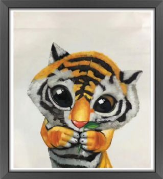 老虎写实油画纯手绘动物油画新中式客厅挂画 手绘
