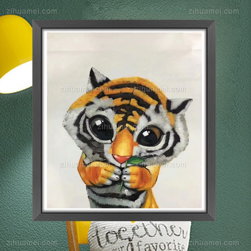 动物写实油画老虎图纯手绘动物油画办公室挂画 手绘