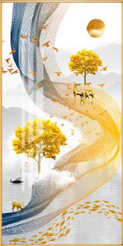 现代高清大型晶瓷画黄金树风水画新中式装饰样板房客厅装饰画 高清微喷