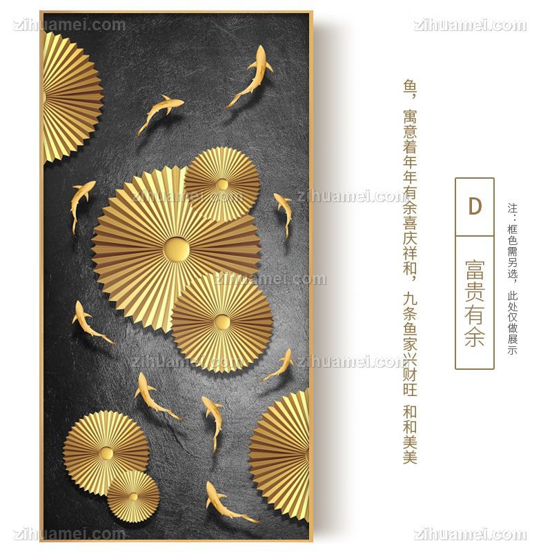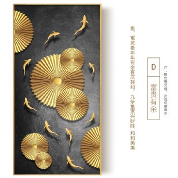 • 金色九鱼图高档轻奢晶瓷装饰画铝合金框现代简约客厅样板房抽象玄关走廊挂画
