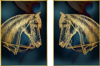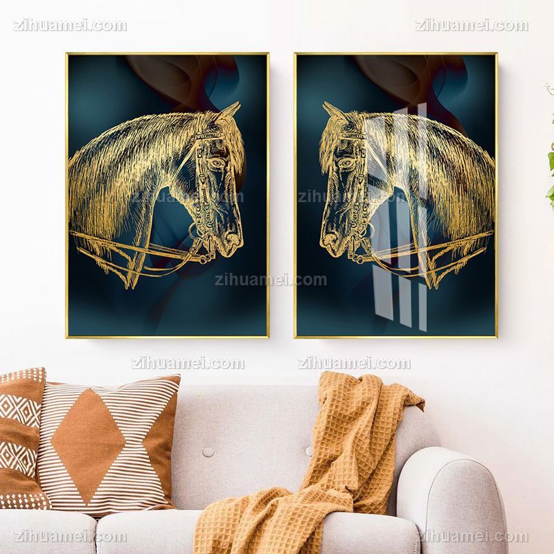 • 高档写意马头轻奢晶瓷画装饰画双联画铝合金框现代简约挂画