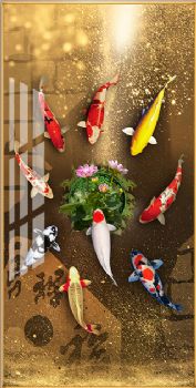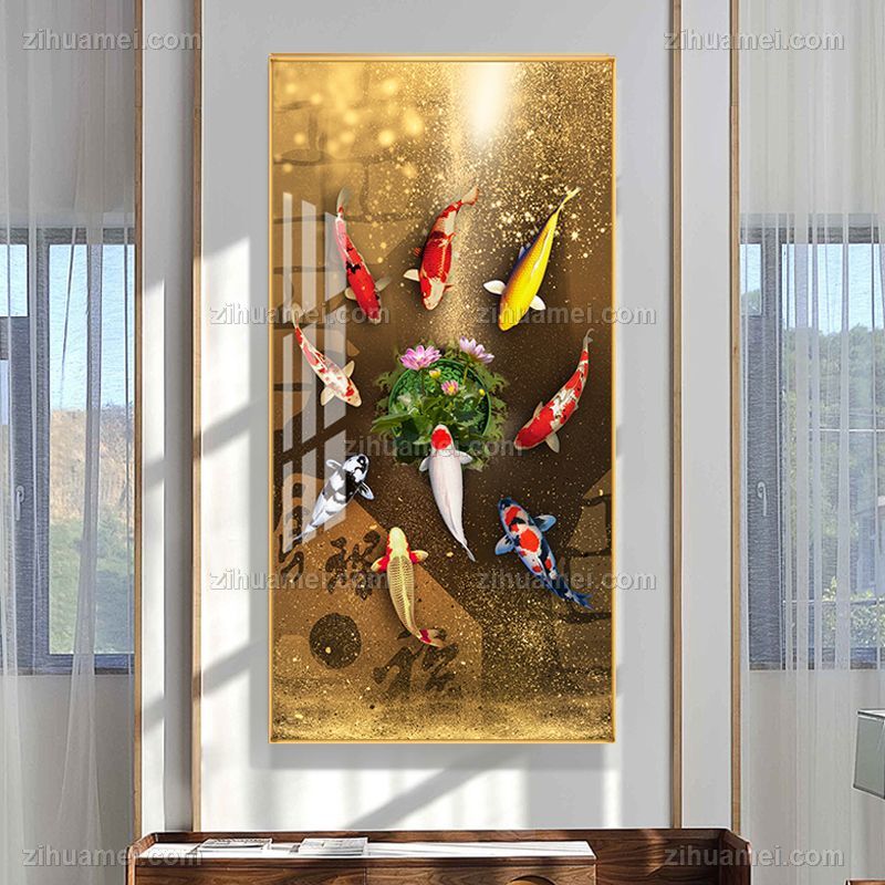 • 适合玄关的新中式装饰画轻奢晶瓷画九鱼图装饰画