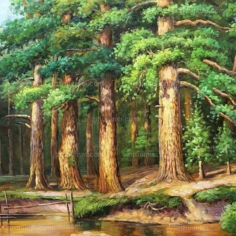 • 欧式油画俄罗斯大森林写实油画办公室挂画客厅挂画手绘油画自然风景油画
