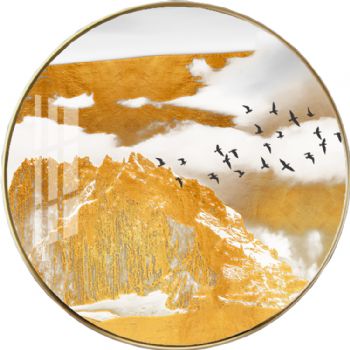 • 黄金山水画高档轻奢晶瓷画装饰画铝合金框新中式挂画